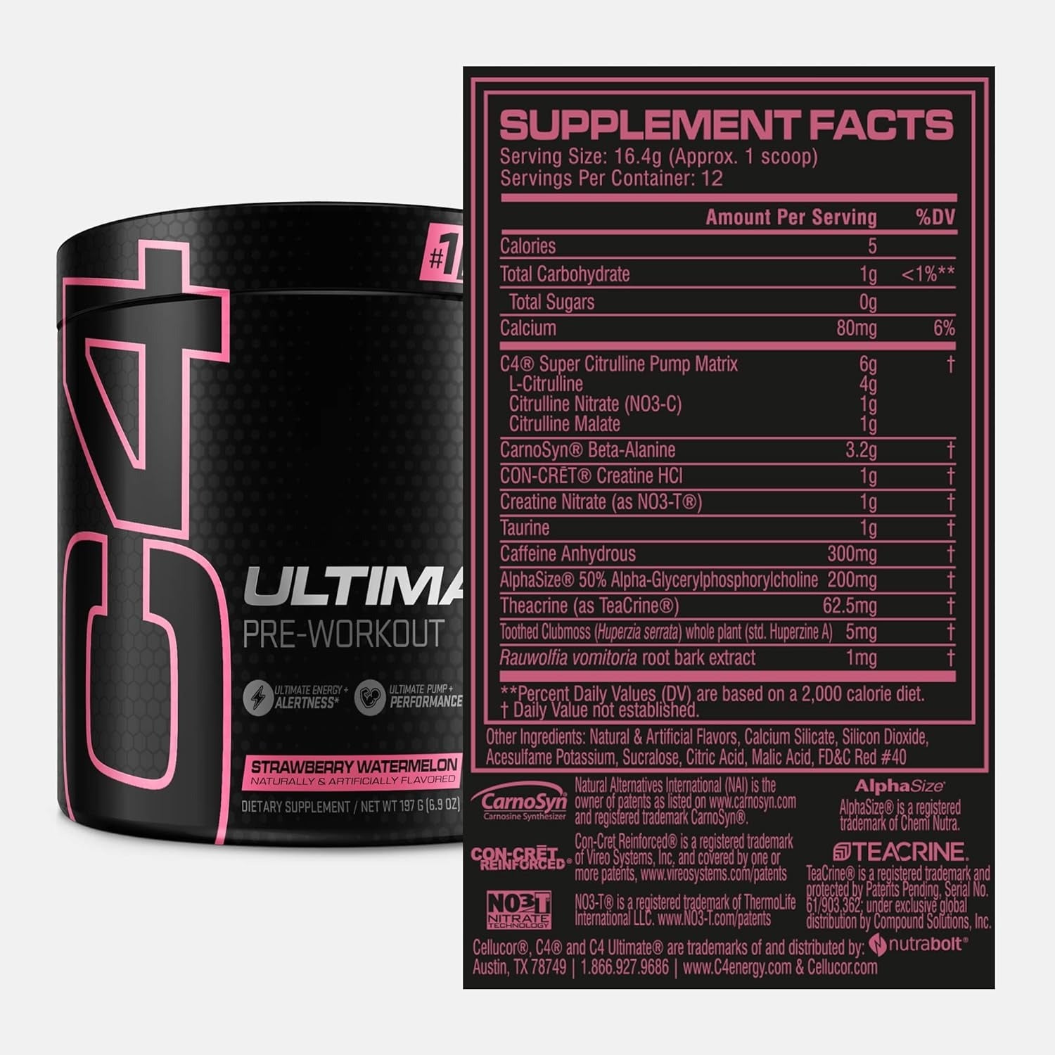 Our most advanced and comprehensive pre-workout experience, C4 Ultimate is fully loaded with 300mg of caffeine, 6g Citrulline Pump Matrix, 3.2g CarnoSyn beta-alanine, and an array of additional supporting ingredients to deliver the ultimate in explosive energy, pumps, performance, and focus.