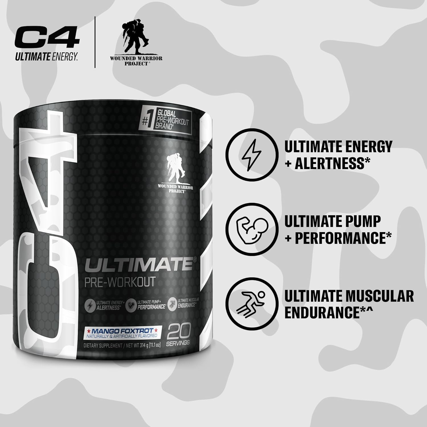 Cellucor C4 Ultimate x WWP Pre Workout Powder Mango Foxtrot - Sugar Free Preworkout Energy Supplement for Men & Women - 300mg Caffeine + 3.2g Beta Alanine + 2 Patented Creatines - 20 Servings